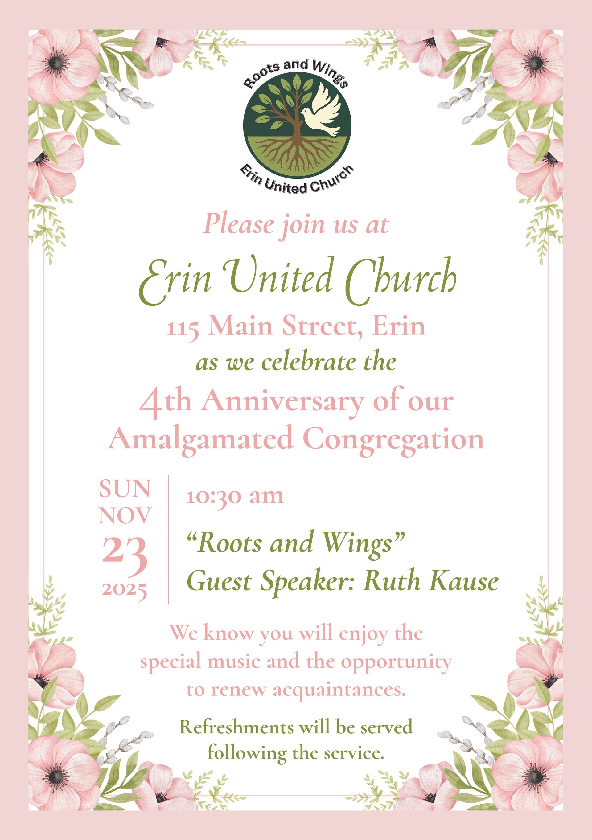 We still offer a live stream on Erin United Church's Facebook Live, as well as on Zoom.